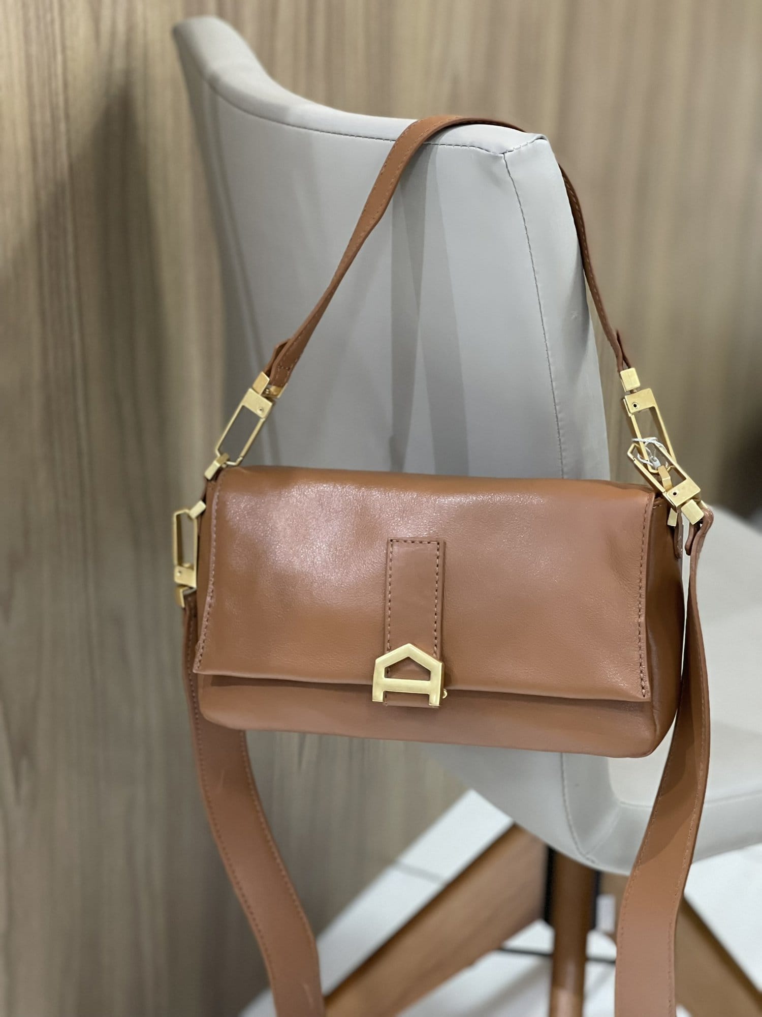 Bolsa Arezzo em Couro Pequena Transversal Alças Caramelo